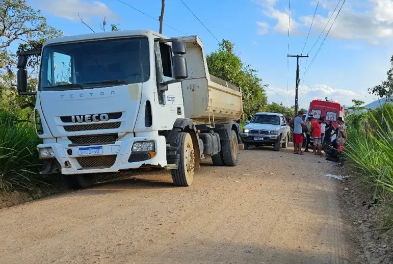 Um grave acidente envolvendo uma motocicleta e um caminhão-caçamba deixou um homem morto na tarde desta segunda-feira (8), na região da Cachoeirinha, em Mutuípe, no Vale do Jiquiriçá.