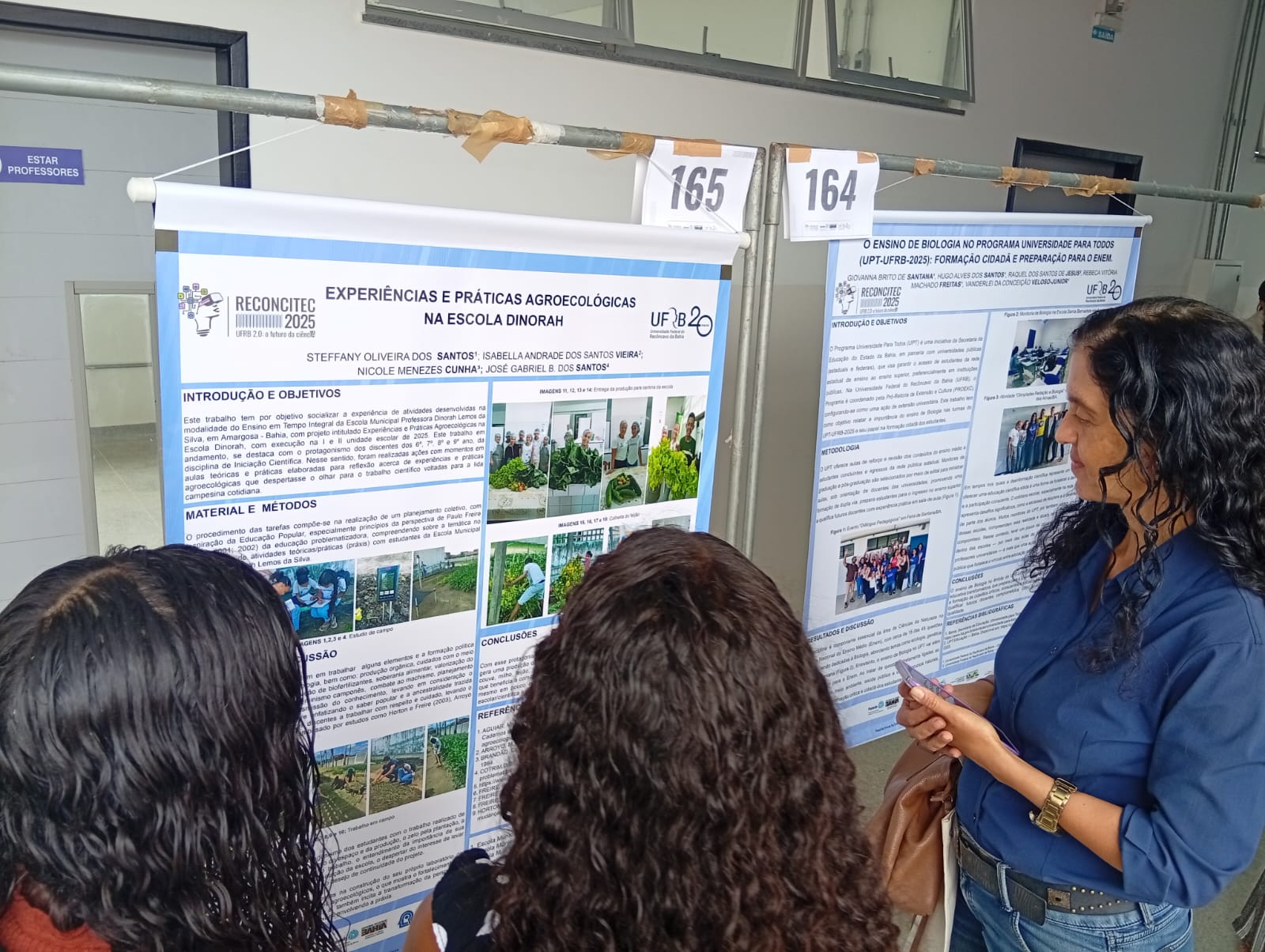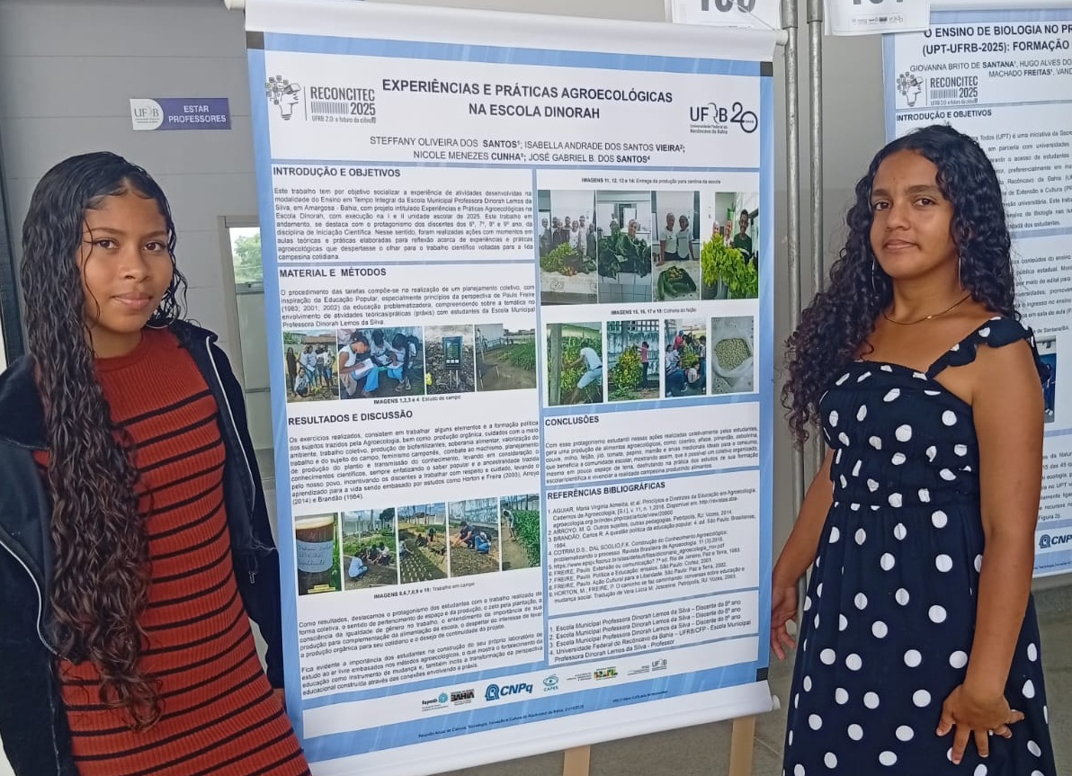 Nesta terça-feira (21/10), as alunas Steffany Santos, Isabella Vieira e Nicole Cunha, do 8º ano A da Escola Municipal em Tempo Integral Prof.ª Dinorah Lemos da Silva, representaram com destaque o município de Amargosa na Reconcitec 2025 – Reunião Anual de Ciência, Tecnologia, Inovação e Cultura do Recôncavo da Bahia, promovida pela Universidade Federal do Recôncavo da Bahia (UFRB).
