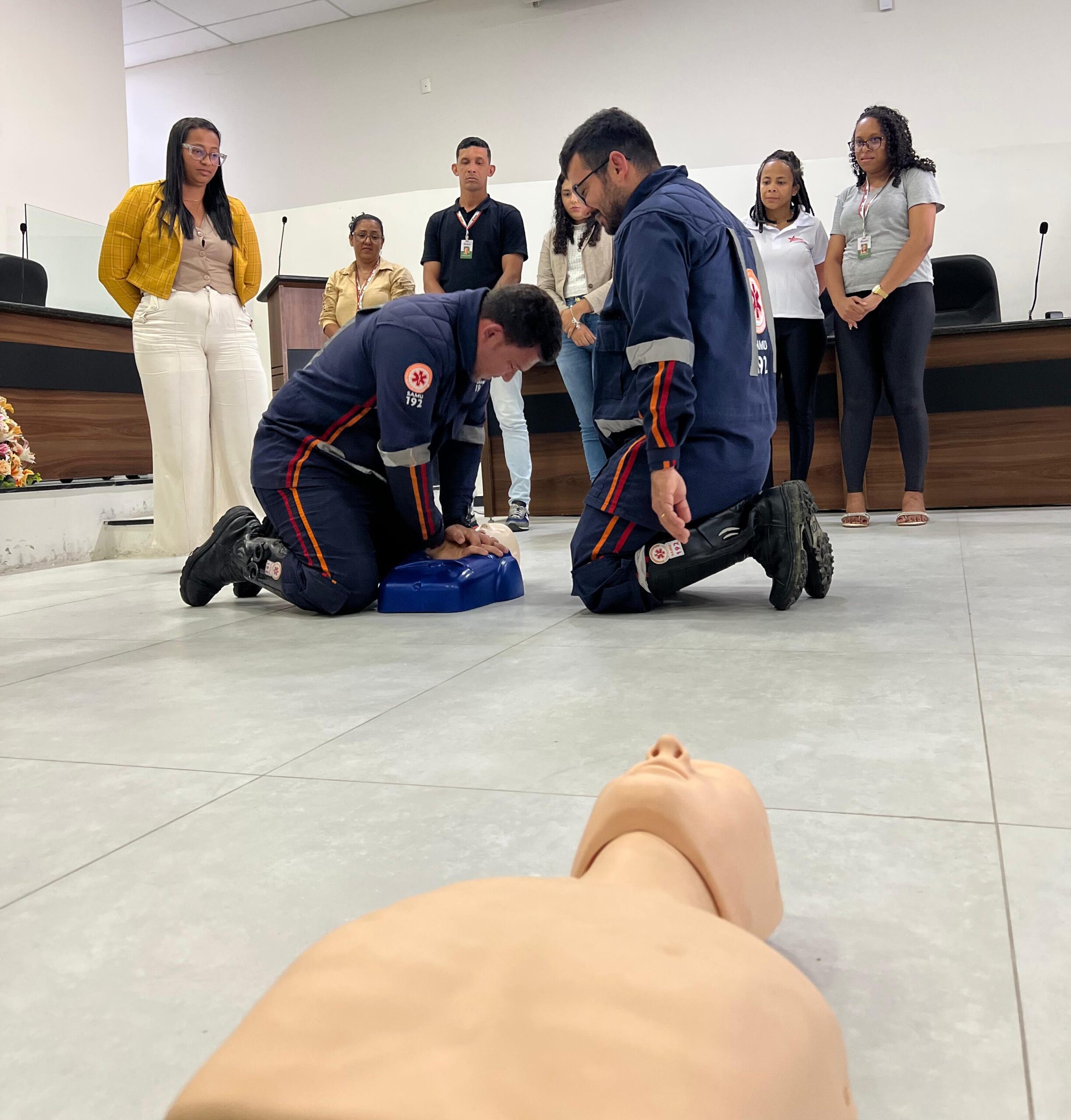 Durante a capacitação, os profissionais do SAMU demonstraram técnicas de atendimento em casos de desmaios, convulsões, engasgos e paradas cardiorrespiratórias. Os servidores também participaram de exercícios práticos, como a reanimação cardiopulmonar (RCP), tornando o aprendizado mais dinâmico e eficiente.