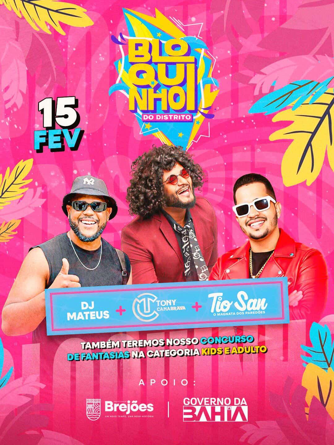 O Distrito Serrana em Brejões já está em clima de carnaval! No dia 15 de fevereiro, a partir das 13h20, acontece mais uma edição do aguardado Bloquinho do Distrito, um evento que já virou tradição e promete reunir moradores e visitantes em uma grande celebração popular. Neste ano, o bloquinho chega com novidades especiais para animar ainda mais o público.