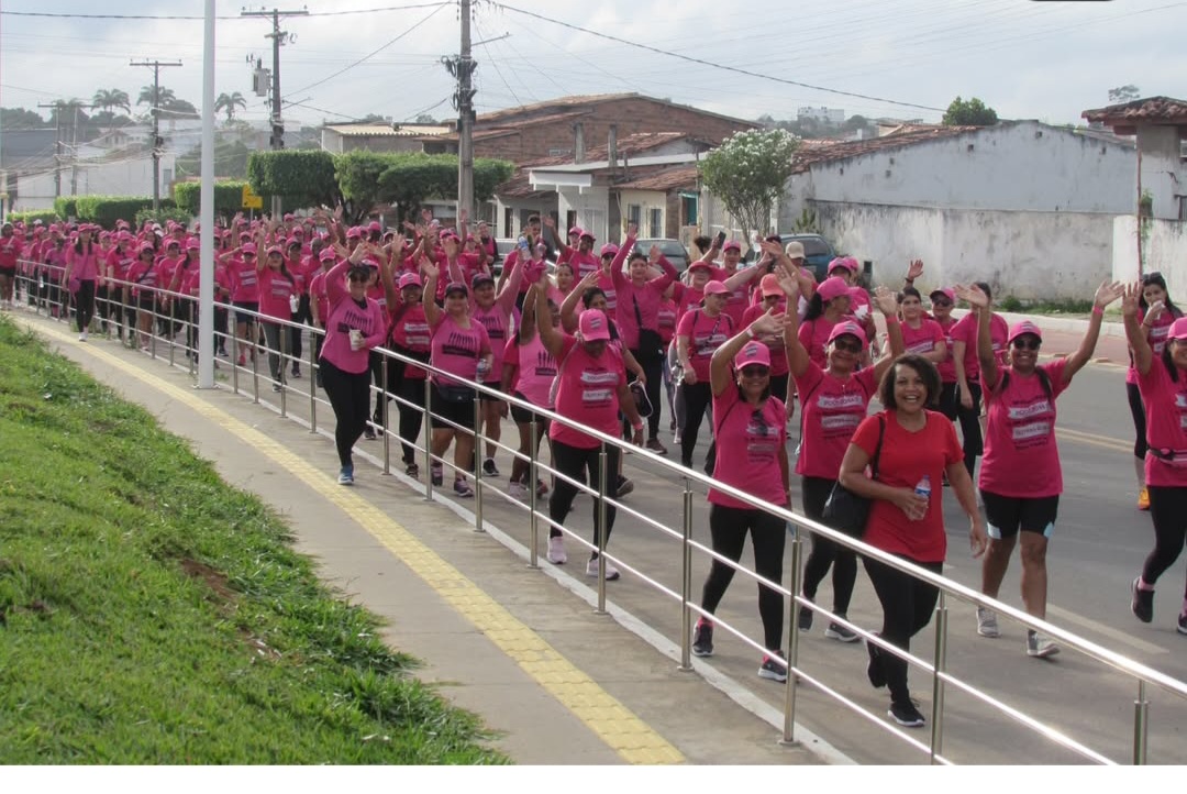 Durante o percurso, marcado por sorrisos, cânticos e uma energia inspiradora, as participantes lembraram da importância do Outubro Rosa, promovendo saúde, auto cuidado e prevenção. 🌷