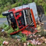 Caminhão carregado de biscoitos vira na Ladeira do Ribeirão entre Amargosa e Mutuípe