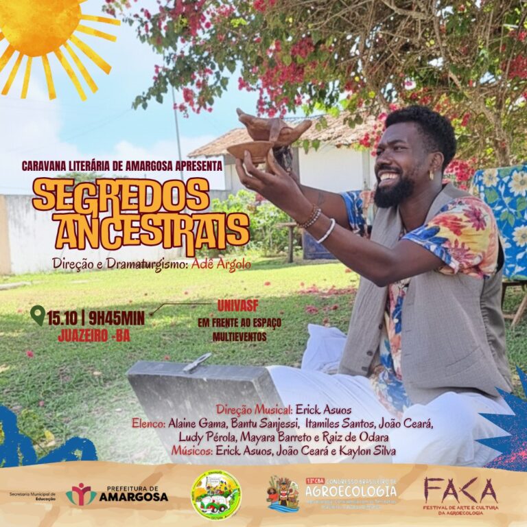 A Caravana Literária de Amargosa apresentará, no dia 15 de outubro, o espetáculo Segredos Ancestrais durante o 13º Congresso Brasileiro de