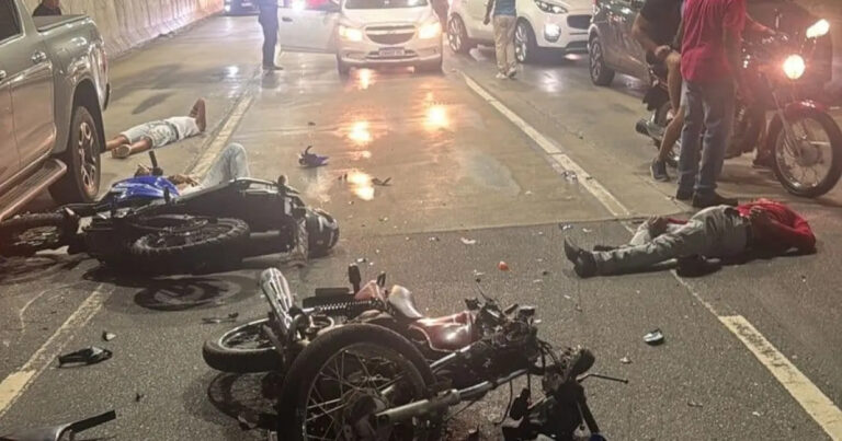 Um acidente grave envolvendo duas motocicletas aconteceu na manhã desta quinta-feira (19), no túnel que liga as avenidas Gal Costa e