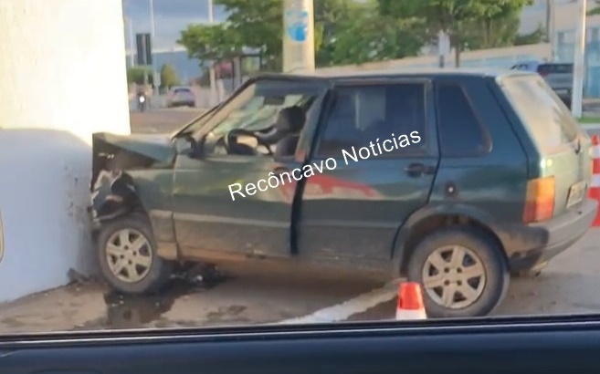Um motorista, que não teve o nome divulgado, ficou ferido após colidir o veículo em um muro de uma escola municipal