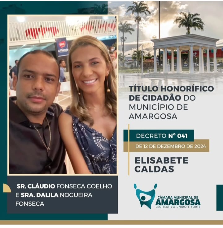 O Título Honorífico de Cidadão Amargosense- Indicado pela Vereadora Elisabete Caldas, através do Decreto Nº 041/2024, Cláudio Fonseca Coelho nasceu em