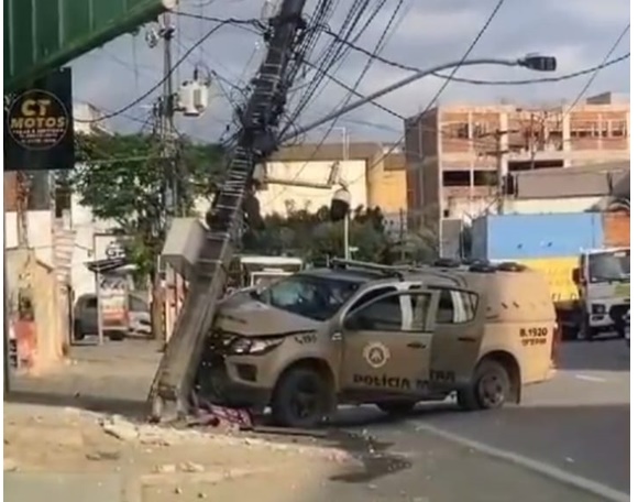 Uma viatura da Polícia Militar, do 19º BPM de Jequié, colidiu com um poste de energia elétrica ao trafegar pela Avenida