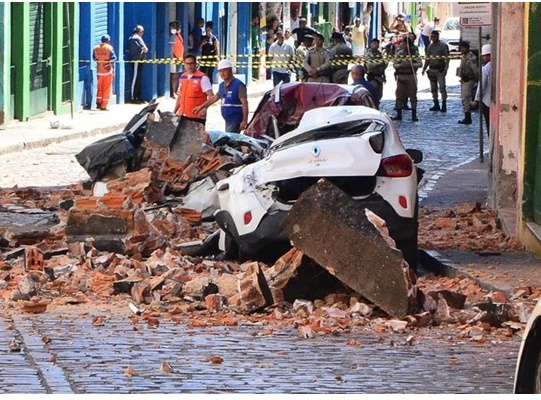 Parte de um prédio, localizado no Pelourinho, em Salvador, desabou no final da manhã desta quarta-feira (11). De acordo com informações