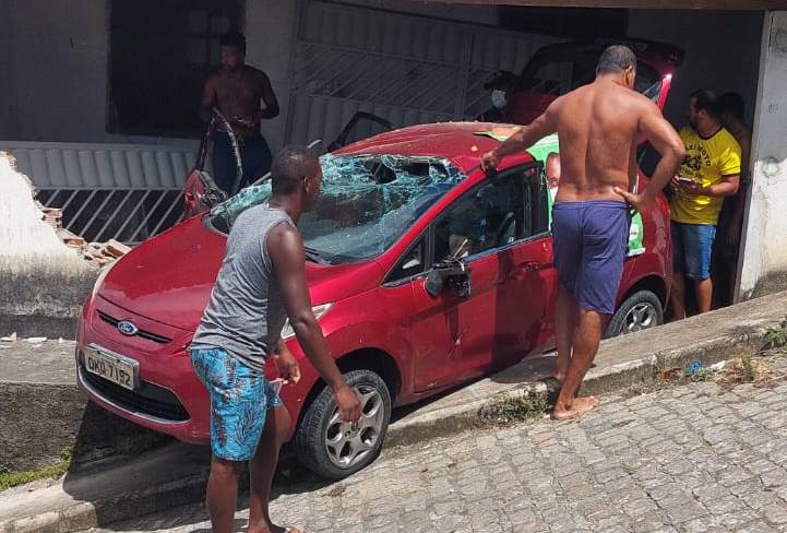Um motorista de um veículo Ford Fiesta, perdeu o controle da direção do veículo e atingiu uma residência na tarde desta