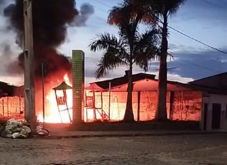 Brinquedos de um parque infantil foram incendiados na manhã deste sábado (17), no bairro São Roque, em Amargosa. O incêndio foi