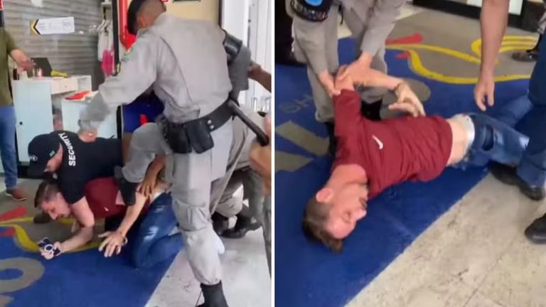 Um vídeo chocante capturou o momento em que um policial militar e seguranças de um shopping em Goiânia agrediram violentamente o empresário João
