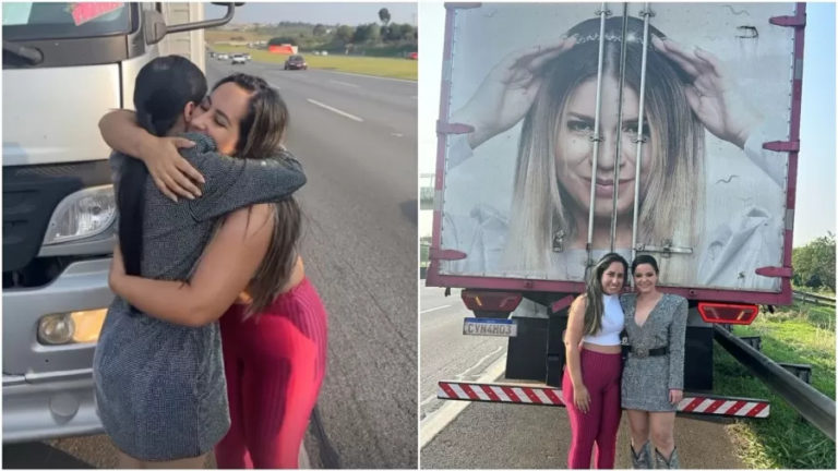Maraisa se emocionou ao ver um caminhão que estampava o rosto de Marília Mendonça e pediu para a motorista que fazia