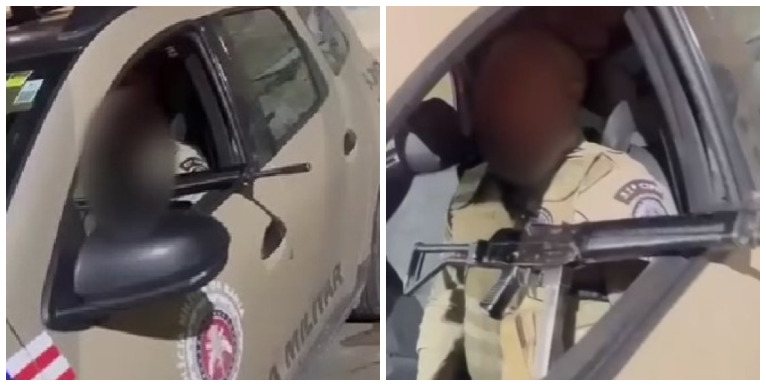 Um policial militar foi filmado descansando dentro de uma viatura, no bairro de Valéria, em Salvador. Nas imagens, que viralizaram nas redes