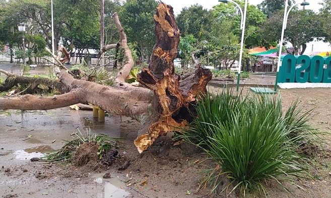 Uma árvore centenária caiu na manhã deste domingo (23), na Praça do Bosque em Amargosa e por pouco não resultou em