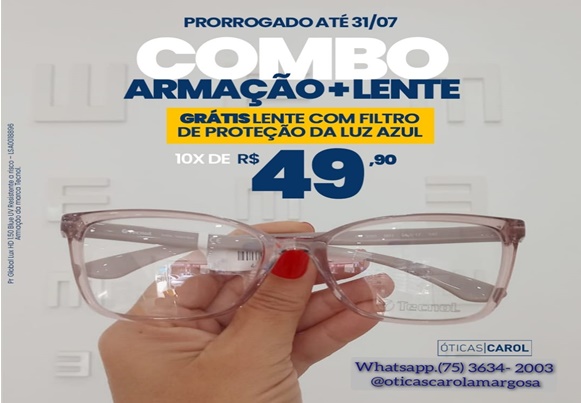 Óculos completo por 10 x de 49,90 + Filtro de Luz Azul Grátis! Lindas armações da marca Tecnol com dois anos