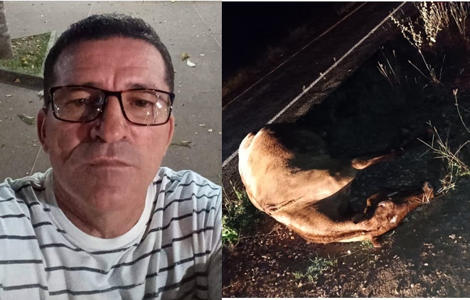 Um homem identificado como Cesar Augusto Vaz Marques, morreu na noite deste domingo (23), após atropelar um aminal que estava solto
