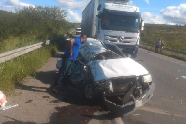 Um casal morreu após um carro e um caminhão baterem de frente, na tarde desta segunda-feira (10), no KM 540 da
