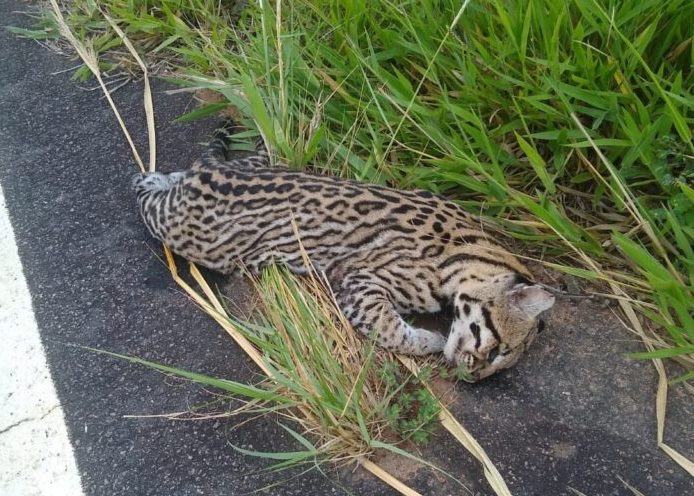 Uma onça da espécie Jaguatirica foi encontrada morta na manhã desta quarta-feira (12), às margens da BA–046 entre as cidades de