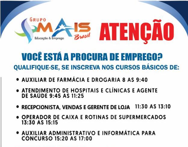 Reconhecida com um projeto que mais coloca alunos no mercado de trabalho a empresa MAIS BRASIL traz diversos cursos de capacitação