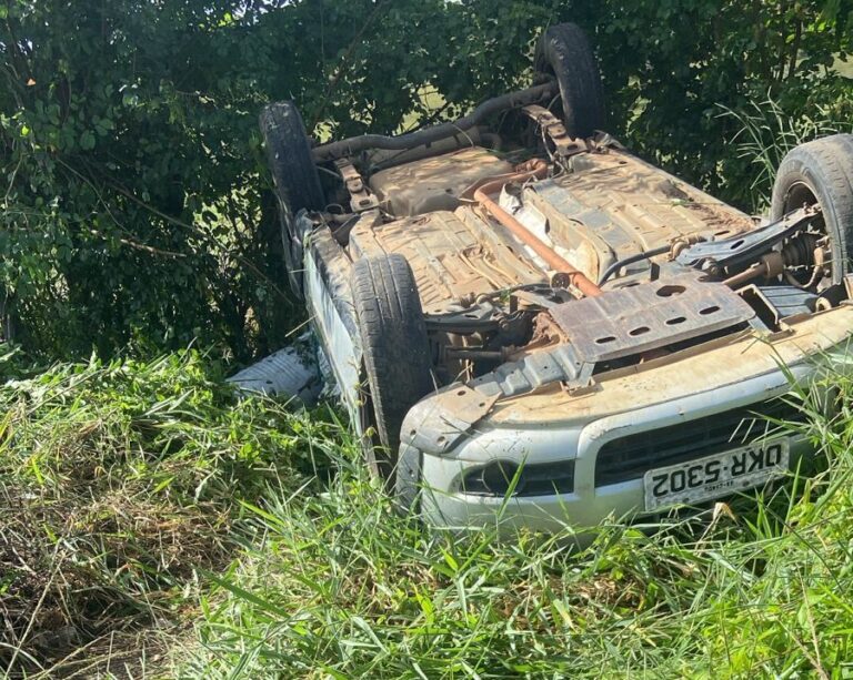 Um veículo capotou após o condutor perder o controle da direção na BA 046, próximo ao CETEP em Amargosa na tarde