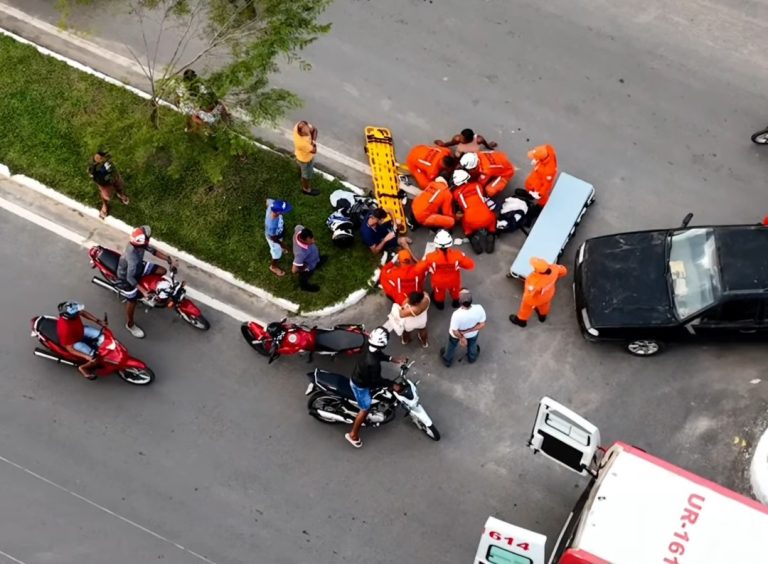 Dois ocupantes de uma motocicleta ficaram feridos após colisão com veículo na tarde desta segunda-feira (16), na Avenida Abelardo Veloso