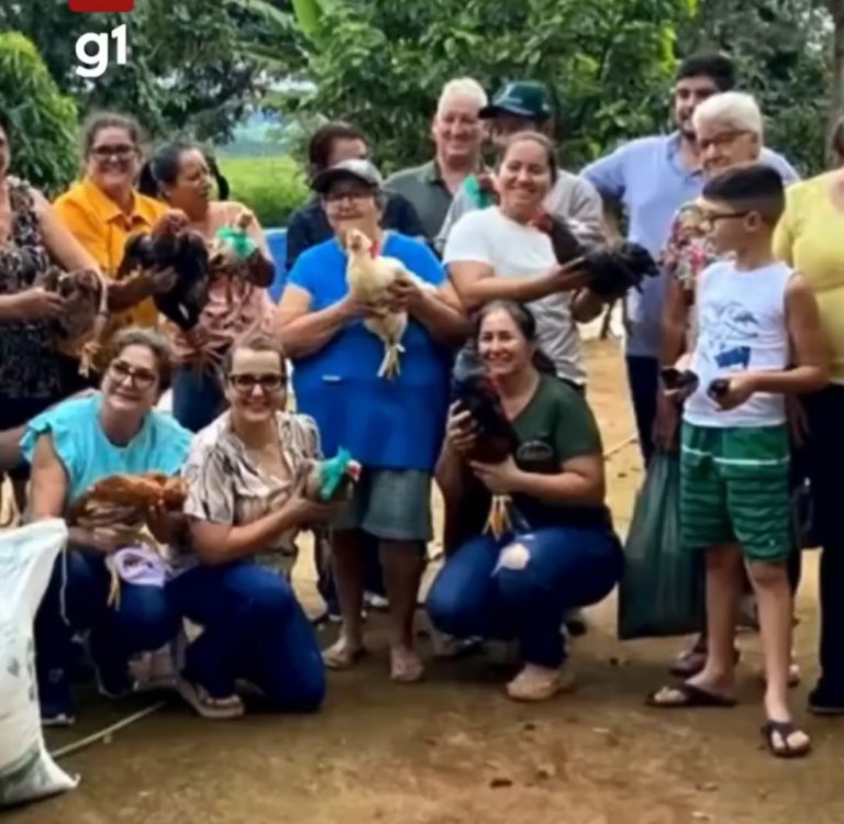 Amizade – Após ter o galinheiro atacado por dois cachorros, a lavradora Percília Cruvinel ganhou uma surpresa especial: um “chá de