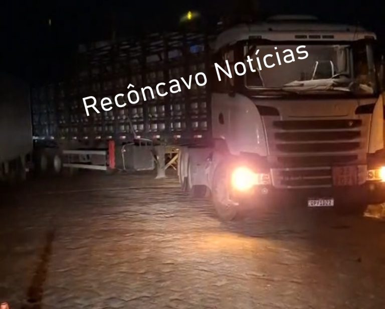 Uma carreta carregada de botijão de gás bateu em poste no fundo da Igreja Santa Rita, na noite deste sábado (07),