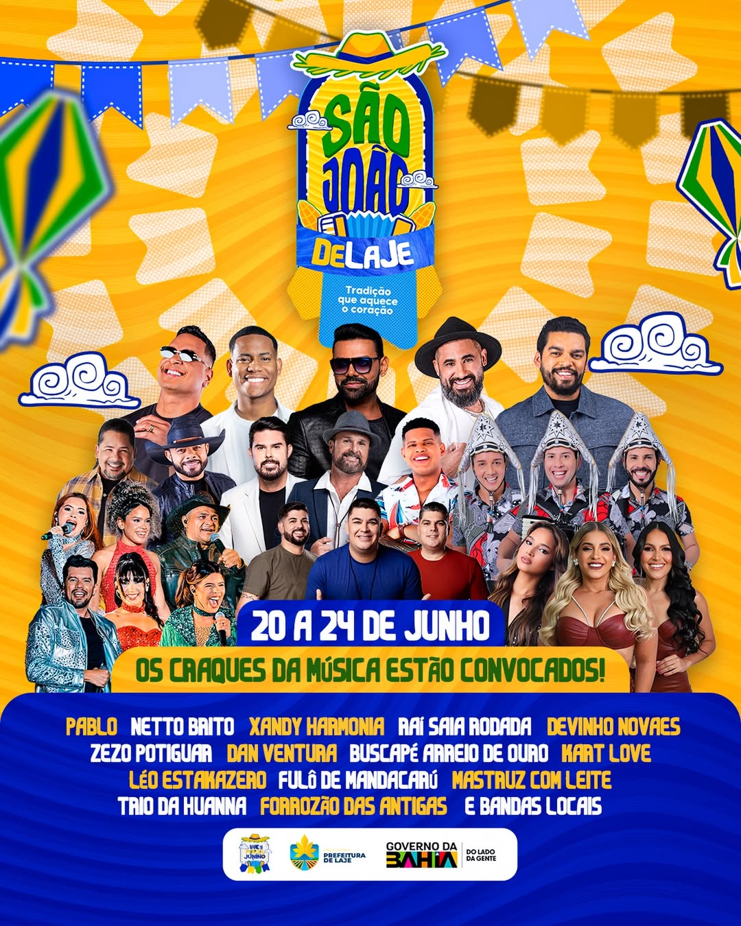 Pode preparar a camisa quadriculada, porque o São João de Laje 2026 não vem para brincar, vem para fazer história! 💥 De 20 a 24 de junho, nossa cidade vira o gramado oficial da alegria e você é o nosso camisa 10!