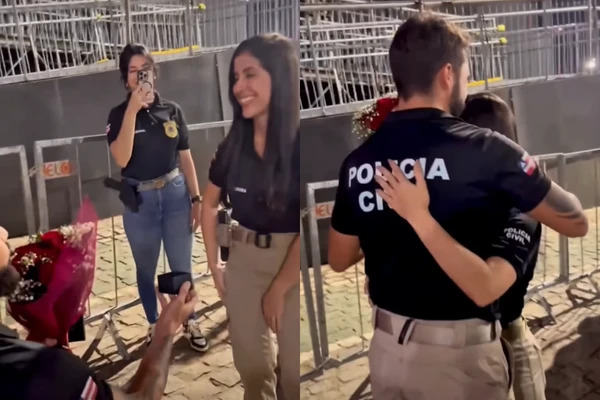 A cena aconteceu quando Letícia e outros policiais se organizavam para gravar um vídeo interno. O que parecia apenas mais uma atividade de rotina acabou se transformando em uma declaração pública de amor, que arrancou aplausos e deixou o clima de celebração ainda mais especial.